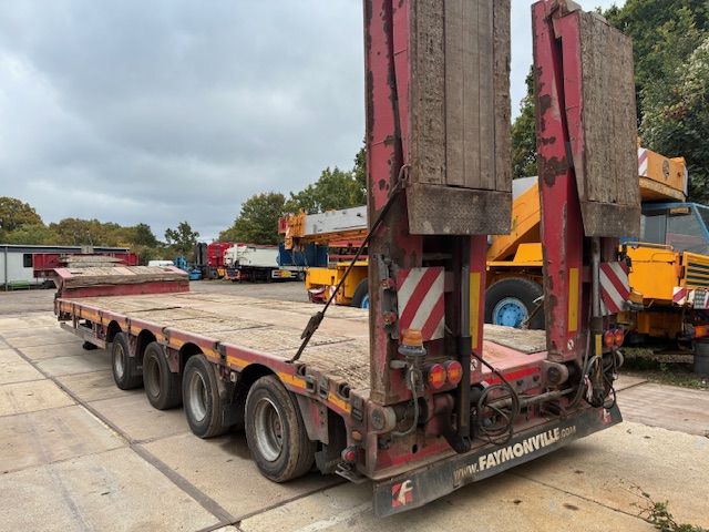 2018 Faymonville 4 axle stepframe extendable,hyd side shift fliptow ramps,out riggers + boards.