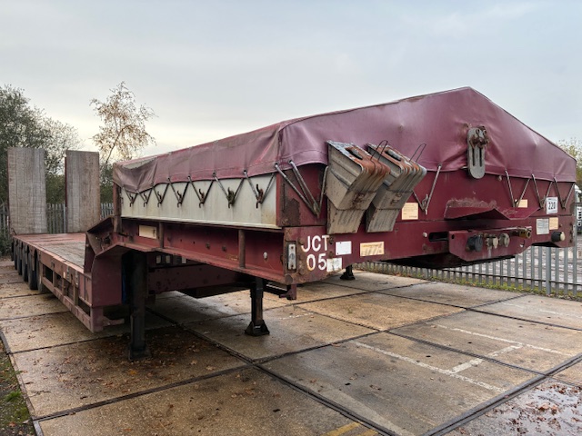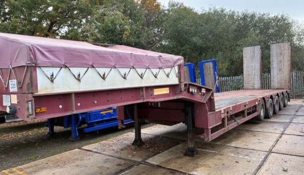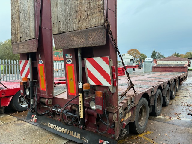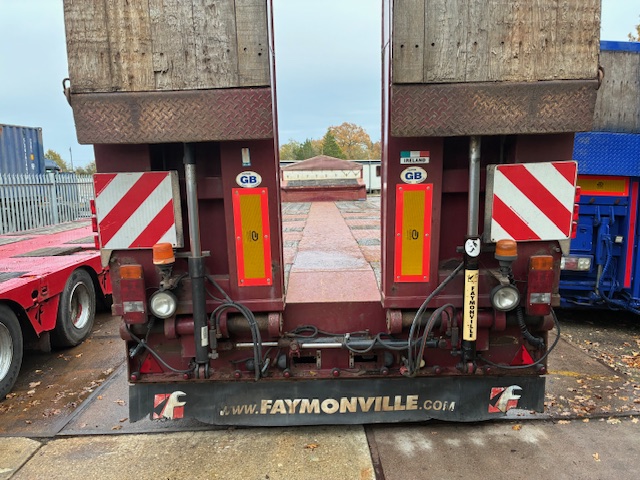 Details: 2005 Faymonville 85 ton 5 axle power steered stepframe lowloader,front lift axle + 4 power steered,hyd side shift flip tow ramps.